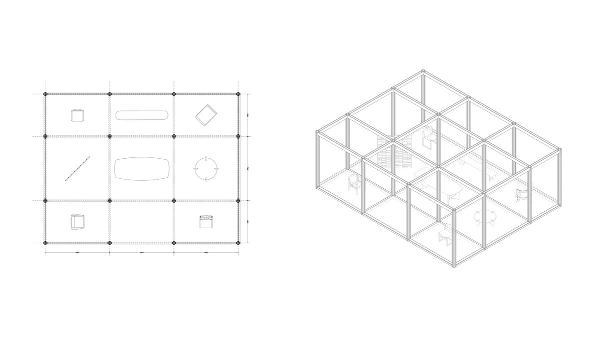 David started by looking at the furniture (and architecture) of the city of Chandigarh. 'That’s where the overall program and construction logic of the final pavilion comes from, including the joinery style we use,’ he pointed out. After an initial phase of research he proposed a nine-block modular structure - all but one, holding a piece of furniture at its centre. 'Fairs are busy places. My intention was to provide a respite by creating an enclosed, visually quiet space,' he explained.