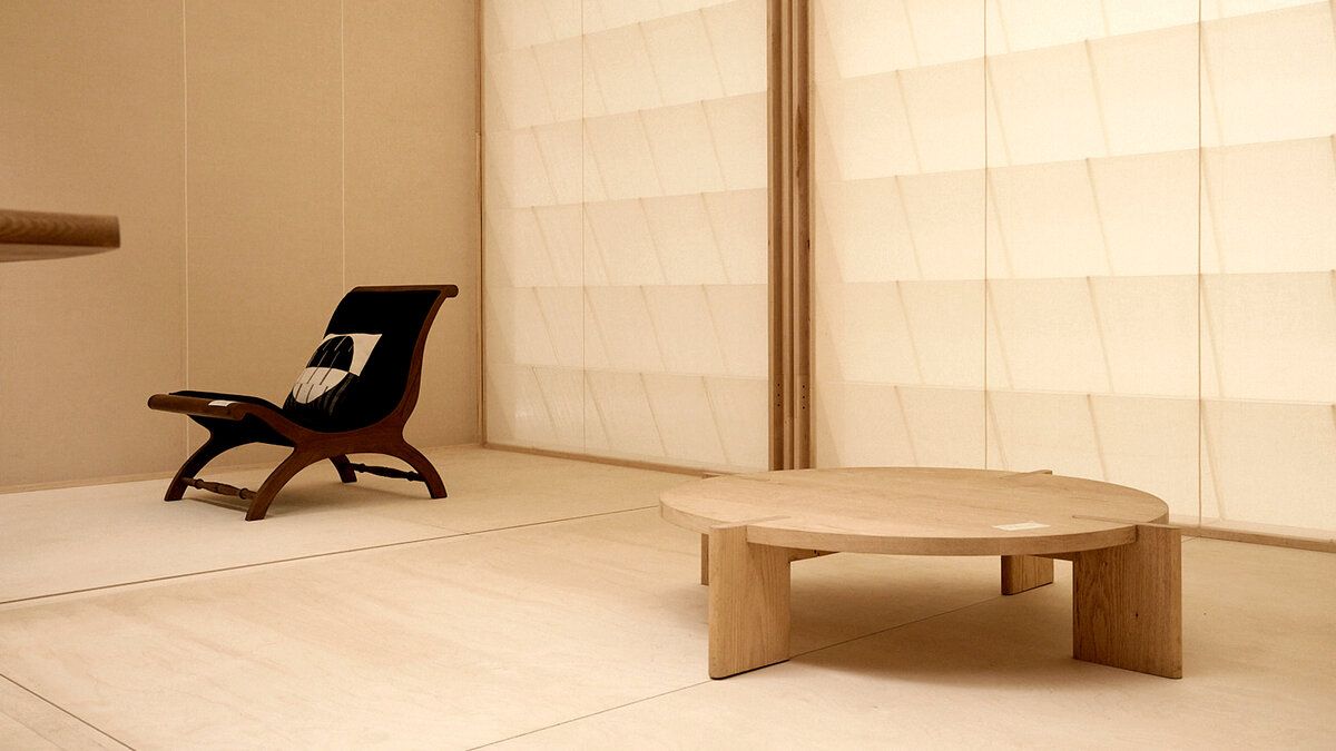 Due to the scale of the project, the initial plan was for David to produce the booth in collaboration with AHEC, taking cues from PH but without its production support. The brief was straightforward. The booth had to accommodate the eight selected PH pieces made with wood supplied by AHEC. Since it would need assembling at the fair site and dismantling once the event was over, the structure had to be light, transportable, and easy to construct and unpack. It also had to use maple, the last of AHEC’s three hardwood species from the donation, that PH had yet to explore more extensively due to limiting section sizes. Most importantly, the booth would have to reflect PH’s design aesthetic and history. This would involve connecting a geographically alien wood to the mid-century modernist moment in India that was the point of PH’s inception. Rod further iterated, 'It needed to show the beauty of the American hard maple from which it was to be made, but also not draw too much attention from the collection of furniture pieces that it housed.’